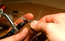 Since the tail is short and slender, it can be tied using almost any material you fancy. The original uses a hackle tip, and that makes good sense, since you have one on the hackle for every fly you tie. We have used Arctic fox in this version, which makes the tail a bit bushier, although it still has to be kept slim to be in harmony with the rest of the fly.