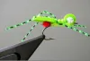This is a fly made for a very specific purpose: cod fishing. It's used on a sink tip or sinking line over fairly deep water (3-4 meter or 10-13') from a float tube, and will turn upside down and 'walk' on the bottom. |