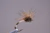 Later my friend and I ran into problems on our favorite stream, when the tiny Caënis dayflies hatched. The trout sipped the fresh emerged flies all over the water - but they rejected all the flies we offered. Then we found a note in a magazine saying, that the fly with the peculiar name - the 'Grey Duster' - should be the right medicine, if it was tied with a parachute hackle. |