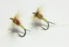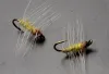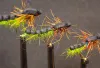 This fly used to be a twist fly like the yellow Twist of Lemon, but it changed and eventually lost the typical twisted body. It has a normal tinsel body and a thorax of peacock herl, but looks much like the Twist of Lemon. |